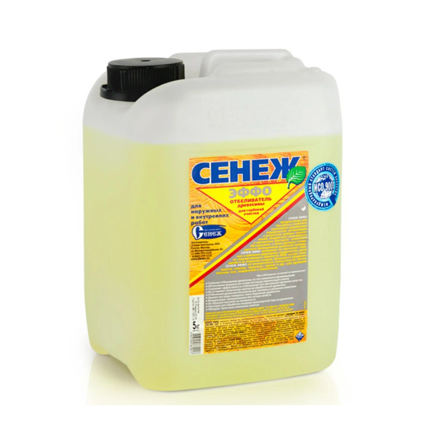 Антисептик-отбеливатель Сенеж ЭФФО для глубокого отбеливания древесины 5 кг, шт купить в Новом Уренгое по оптовой цене в интернет магазине СтройПлатформа. Отбеливатель Сенеж Эффо предназначен для быстрого глубокого осветления деревянных поверхностей, потемневших в результате грибных окрашиваний, воздействия атмосферных и временных факторов, солнечного УФ излучения, а также удаления поверхностного биопоражения различной природы.
