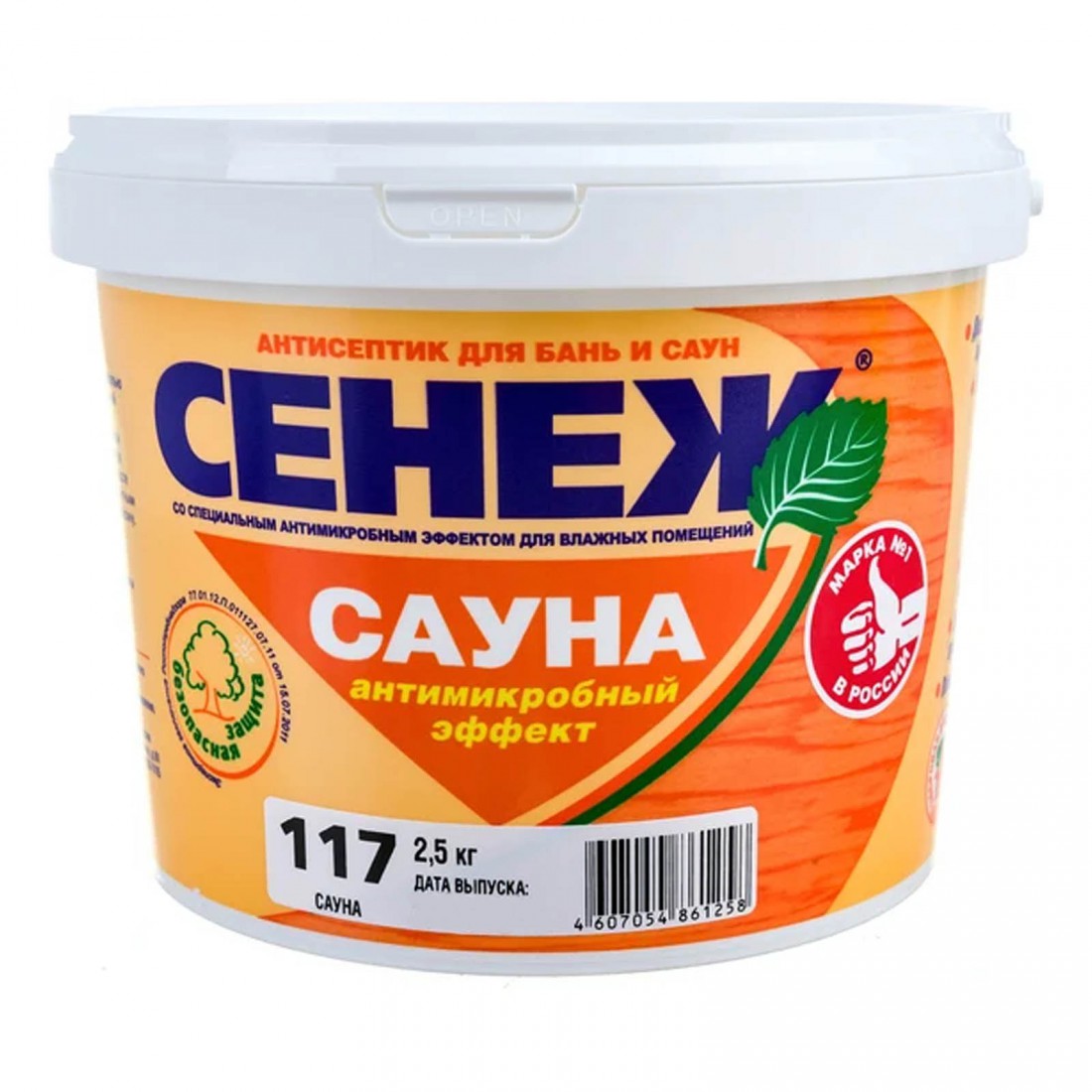 Антисептик Сенеж Сауна для бань и саун с антимикробным эффектом 2,5 кг, шт купить в Новом Уренгое по оптовой цене в интернет магазине СтройПлатформа. Антисептик для бань и саун Сенеж Сауна, на акрилатной основе