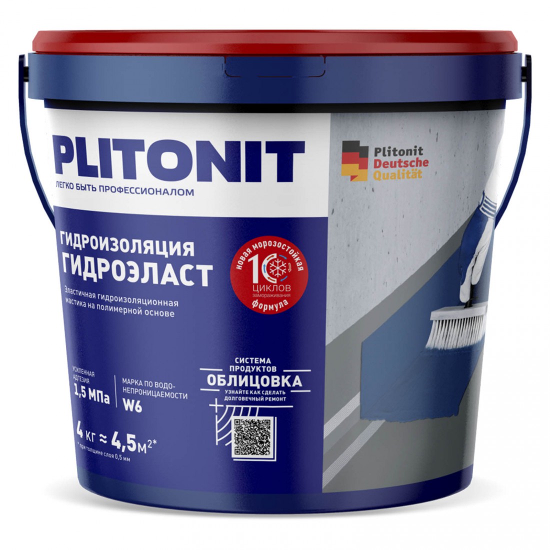 Мастика гидроизоляционная Plitonit ГидроЭласт 4 кг, шт купить в Новом Уренгое по оптовой цене в интернет магазине СтройПлатформа.