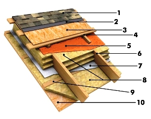 Система утепленной скатной кровли с покрытием гибкой черепицей