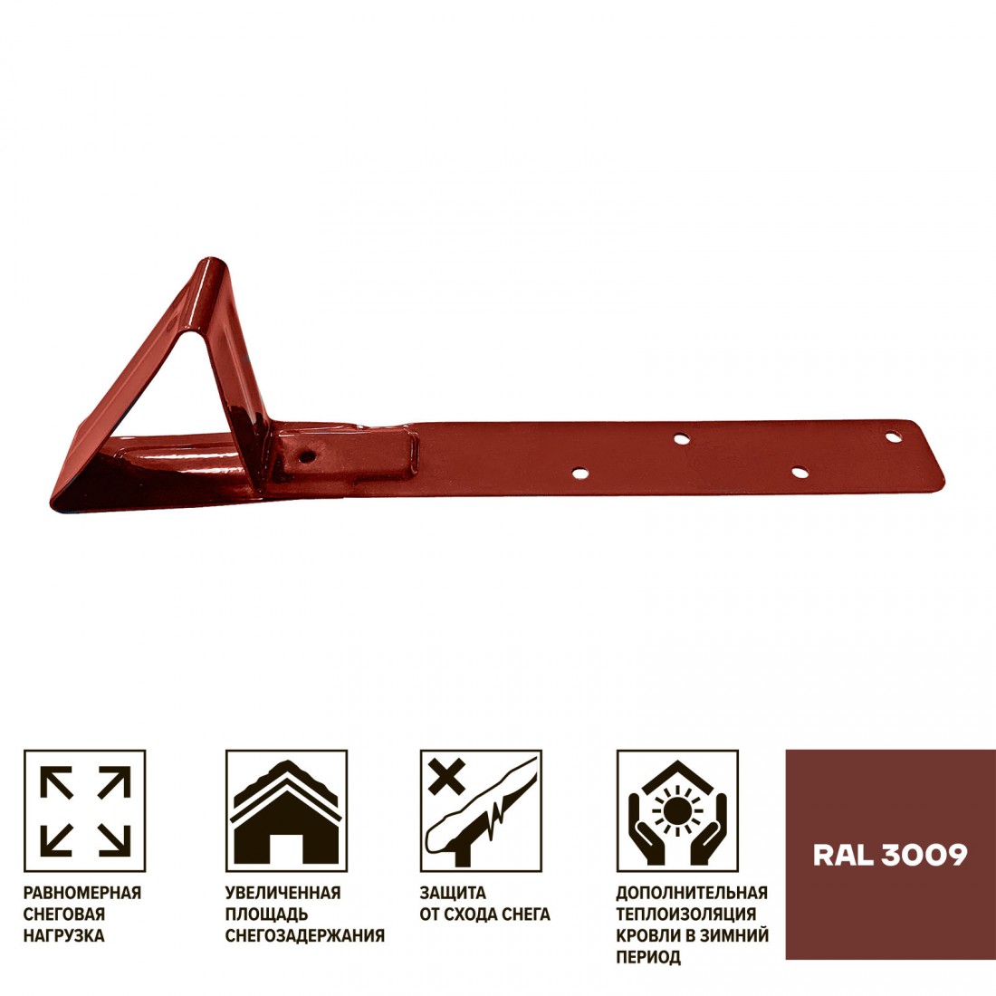 Снегозадержатель усиленный для гибкой черепицы Технониколь Ral 3009 красный, шт купить в Новом Уренгое по оптовой цене в интернет магазине СтройПлатформа. Снегозадержатель усиленный для гибкой черепицы представляет собой металлический уголок с цветным полимерным покрытием на удлиненной ножке, который устанавливается непосредственно в процессе укладки кровельного покрытия. Этот элемент эффективно препятствует лавинообразному сходу снега, защищая водосточную систему и обеспечивая равномерную нагрузку на кровлю.
