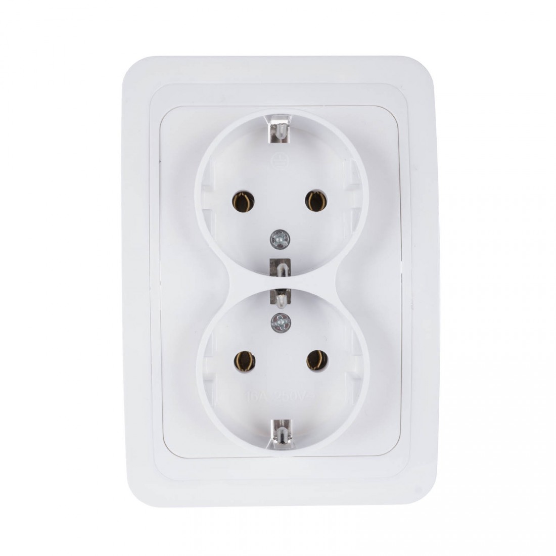 Двойная розетка серии «Валери» предназначена для скрытого монтажа в жилых и коммерческих помещениях. Рассчитана на ток до 16 А и оборудована заземляющими контактами для безопасной эксплуатации. Лицевая панель выполнена из глянцевого белого АБС-пластика, основание — из термостойкой керамики, устойчивой к перегреву.