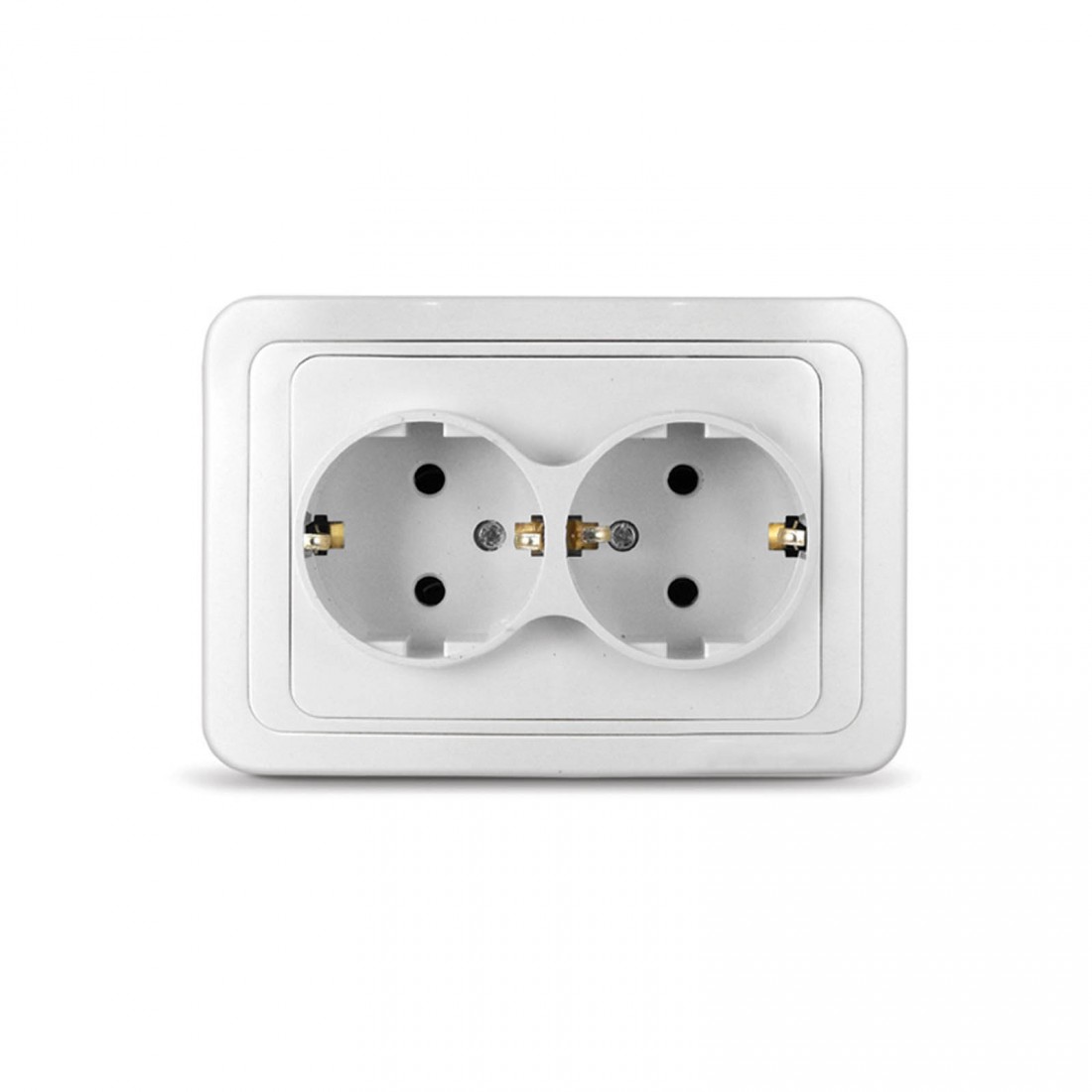 Розетка для скрытой проводки, двойная, с заземлением, белая, шт купить в Новом Уренгое по оптовой цене в интернет магазине СтройПлатформа.