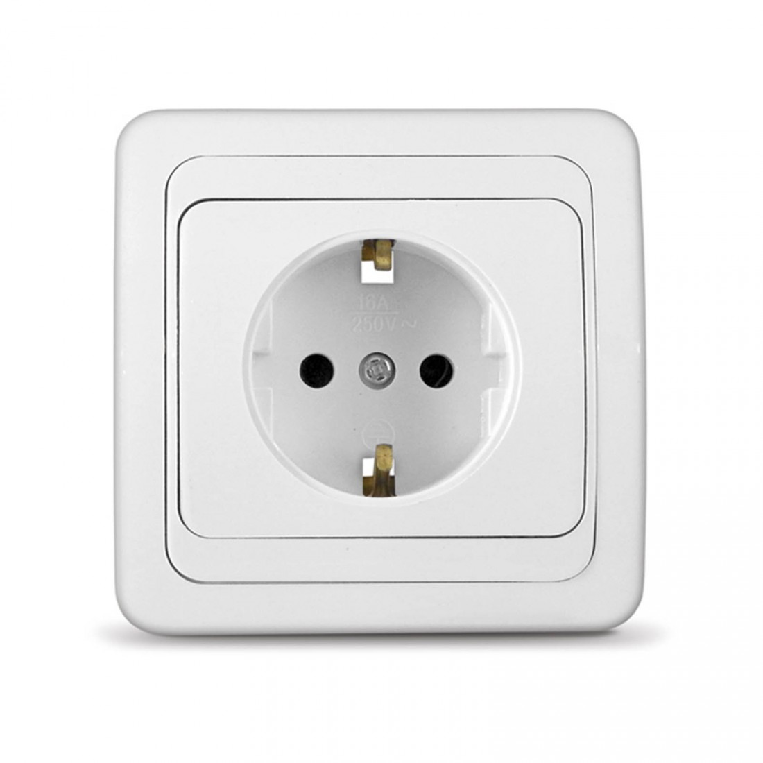 Одинарная розетка серии «Валери» предназначена для скрытого монтажа в стену и рассчитана на номинальный ток до 16 А. Оснащена заземляющим контактом для безопасного подключения электроприборов. Лицевая часть выполнена из прочного белого АБС-пластика, основание — из термостойкой керамики, устойчивой к перегреву и возгоранию.