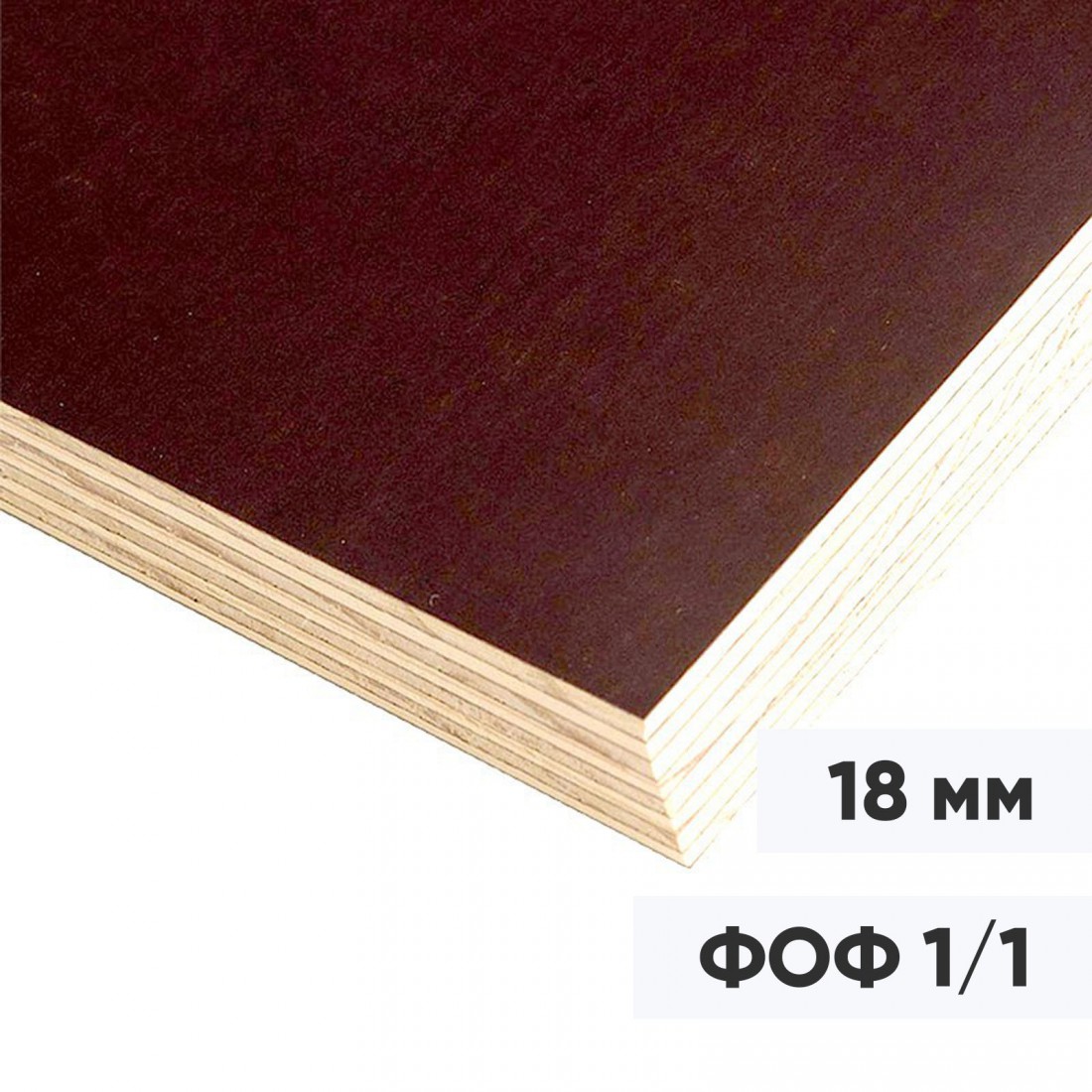 Фанера ФОФ 18 мм ламинированная, сорт 1/1, береза, 2440х1220, лист купить в Новом Уренгое по оптовой цене в интернет магазине СтройПлатформа. Фанера березовая марки ФОФ (ламинированная) - это фанера повышенной влагостойкости, состоящая из склеенных между собой тонких слоев шпона, облицована специальной пленкой плотностью 120 г/м2 темно коричневого цвета. Ламинированная поверхность фанеры препятствует проникновению влаги, имеет высокую устойчивость к истиранию, химикатам, образованию грибка и плесени. Торцы фанеры окрашены водостойкой краской.