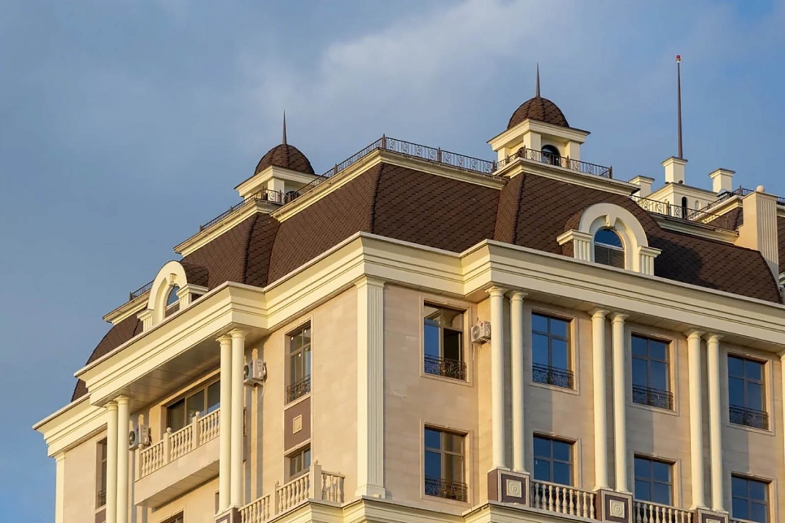 Используется как основное кровельное покрытие для скатных крыш с уклоном от 12°. Благодаря рельефной текстуре и эффекту голографического объема создает выразительный архитектурный облик.