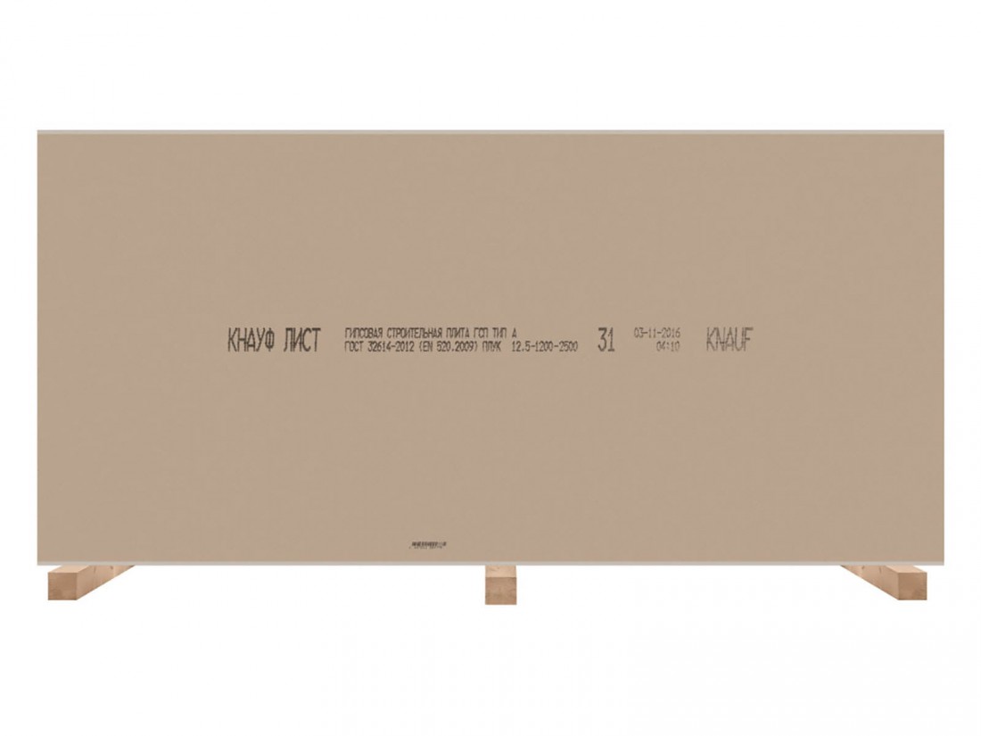 Гипсокартон Knauf ГКЛ 2500х1200х12,5 мм, лист купить в Новом Уренгое по оптовой цене в интернет магазине СтройПлатформа.