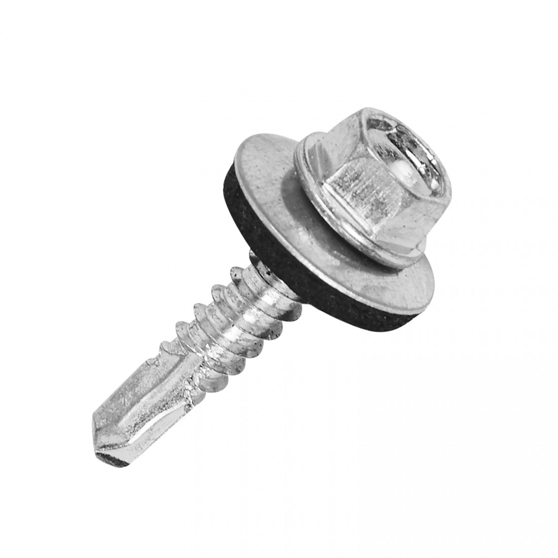 Саморез кровельный сверло 5,5х25 мм металл-металл оцинкованный, 250 шт/упак купить в Новом Уренгое по оптовой цене в интернет магазине СтройПлатформа. Крепежный элемент со сверлом, шайбой и резиновой уплотняющей прокладкой, выполнен из оцинкованной стали, неокрашенен. Имеет шестигранную головку и шлиц в виде шестигранника под торцевую биту 10.