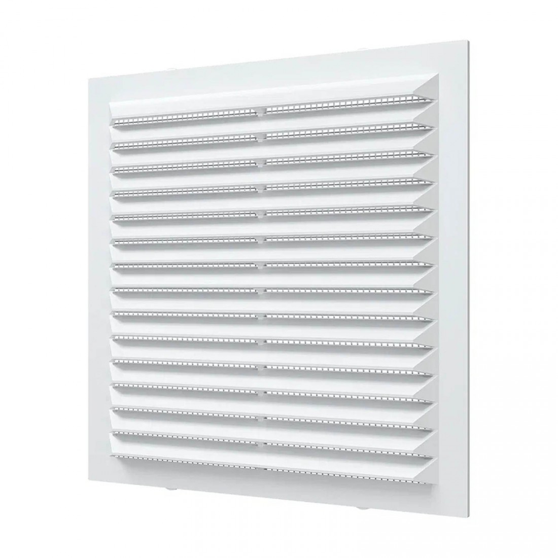 Модель оснащена прочной антимоскитной сеткой, которая надежно защищает помещение от насекомых, пыли и мусора. Неразъемная конструкция гарантирует долговечность и простоту обслуживания. Для удобства монтажа решетка может быть установлена с помощью саморезов или клея.