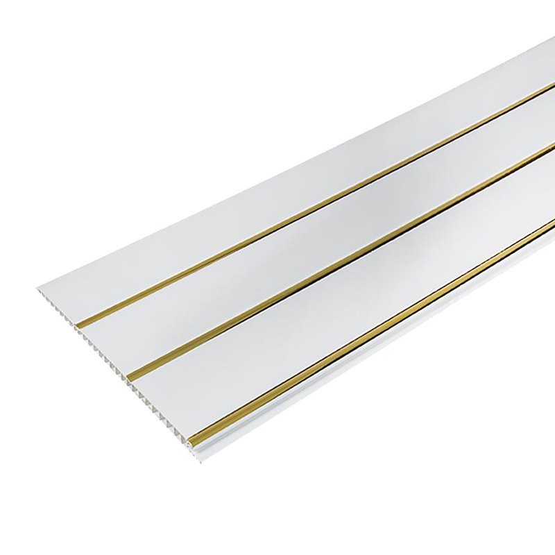 Панель ПВХ трехсекционная золото лак 3000х240х8 мм, 10 шт/упак купить в Новом Уренгое по оптовой цене в интернет магазине СтройПлатформа. ПВХ панели — это современный материал, предназначенный для внутренней отделки стен и потолка. В качестве исходного сырья выступает поливинилхлорид — экологичный материал, не содержащий асбеста и кадмия, с минимальным содержанием смягчителя.