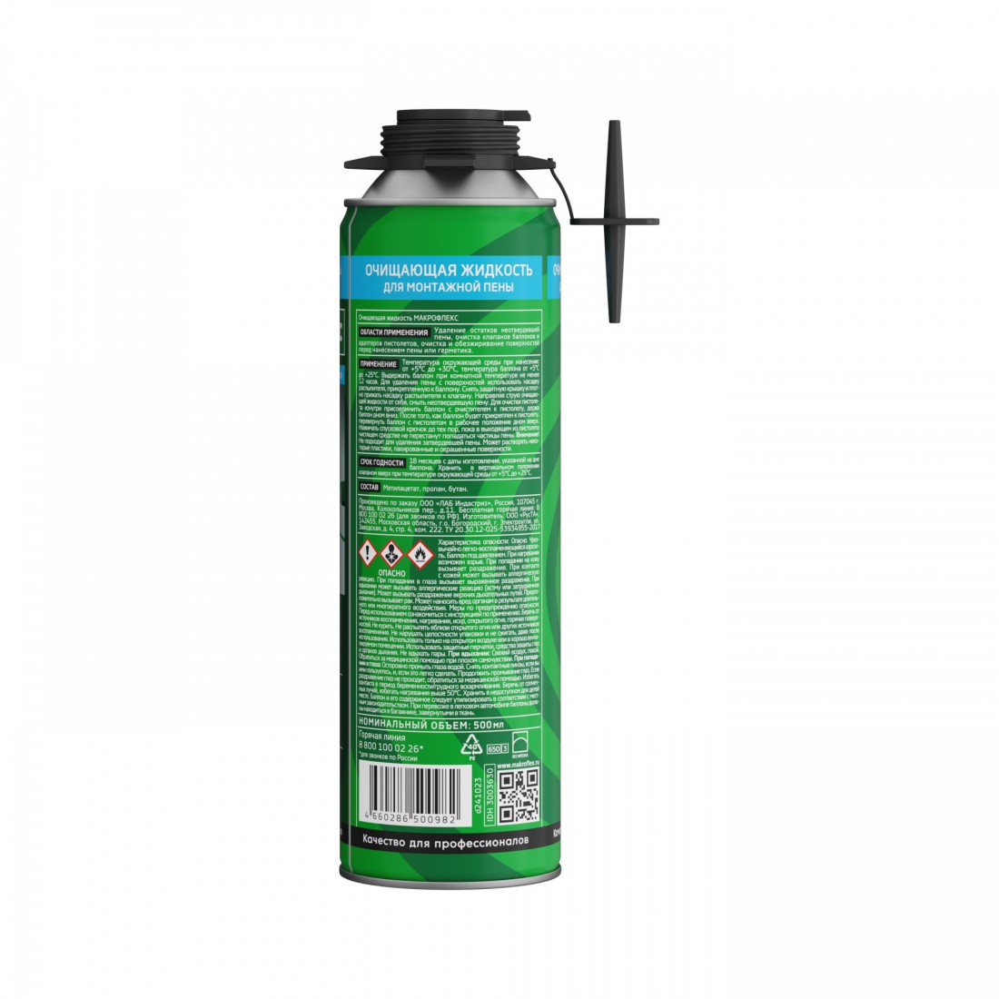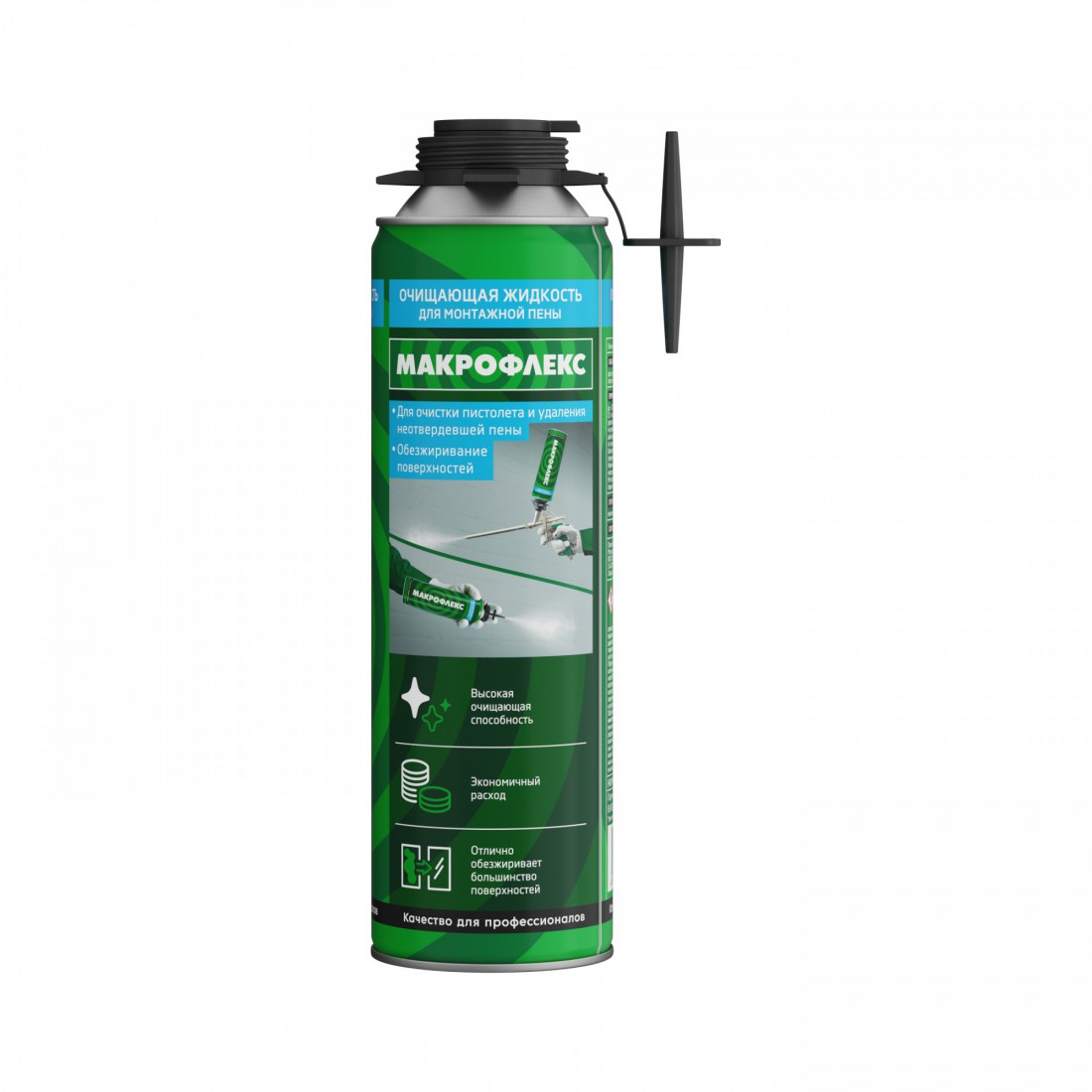 Очиститель монтажной пены Макрофлекс 500 мл, шт купить в Новом Уренгое по оптовой цене в интернет магазине СтройПлатформа. Очищающая жидкость Макрофлекс – универсальное средство для удаления неотвердевшей полиуретановой пены. Продукт прост в применении, благодаря универсальному адаптеру возможно использовать баллон с прилагаемой насадкой или присоединить к монтажному пистолету.