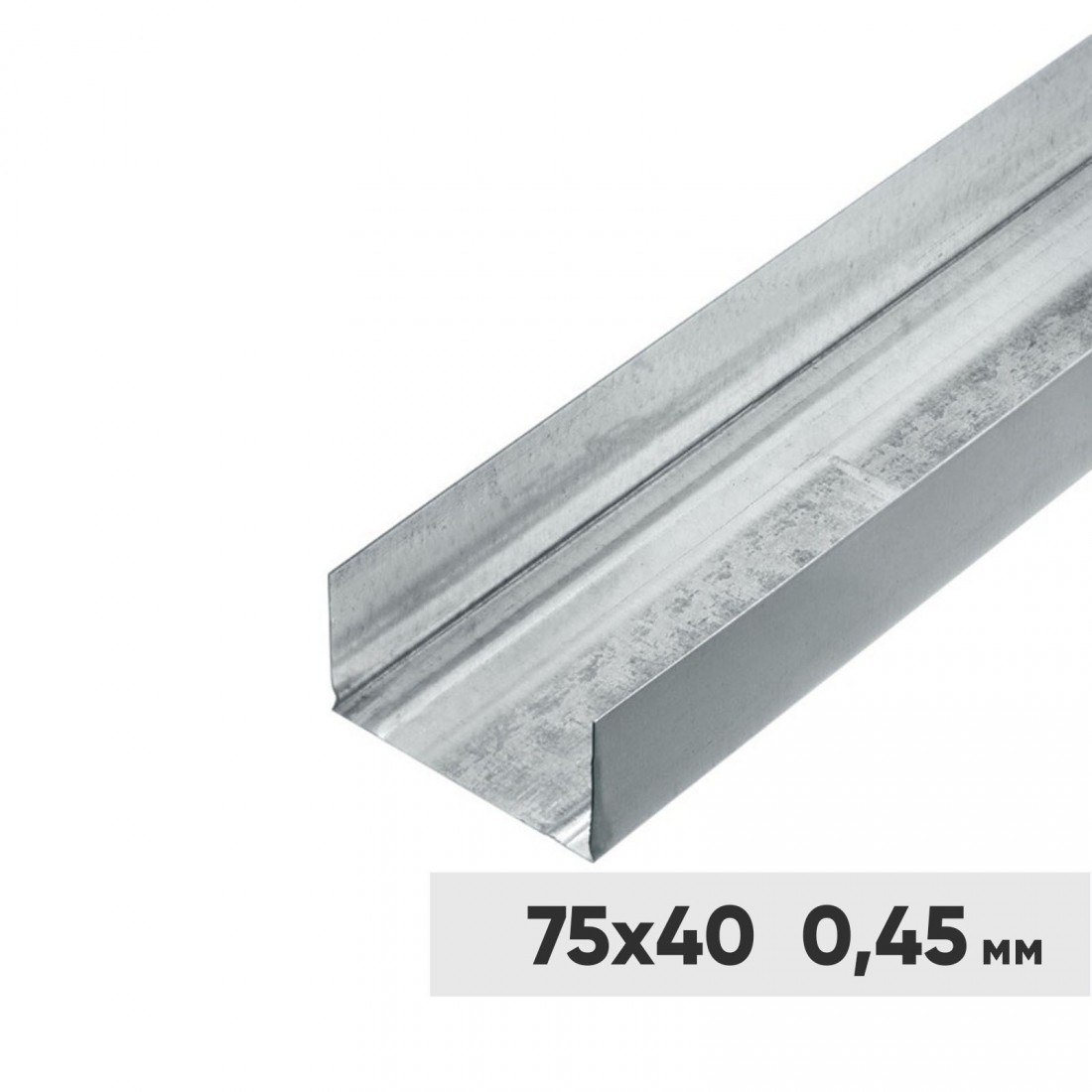 Профиль направляющий ПН 75х40х3000 мм оцинкованный 0,45 мм, шт купить в Новом Уренгое по оптовой цене в интернет магазине СтройПлатформа. Профиль направляющий гипсокартона предназначается для монтажа гипсокартона в составе систем монтажа ГКЛ.