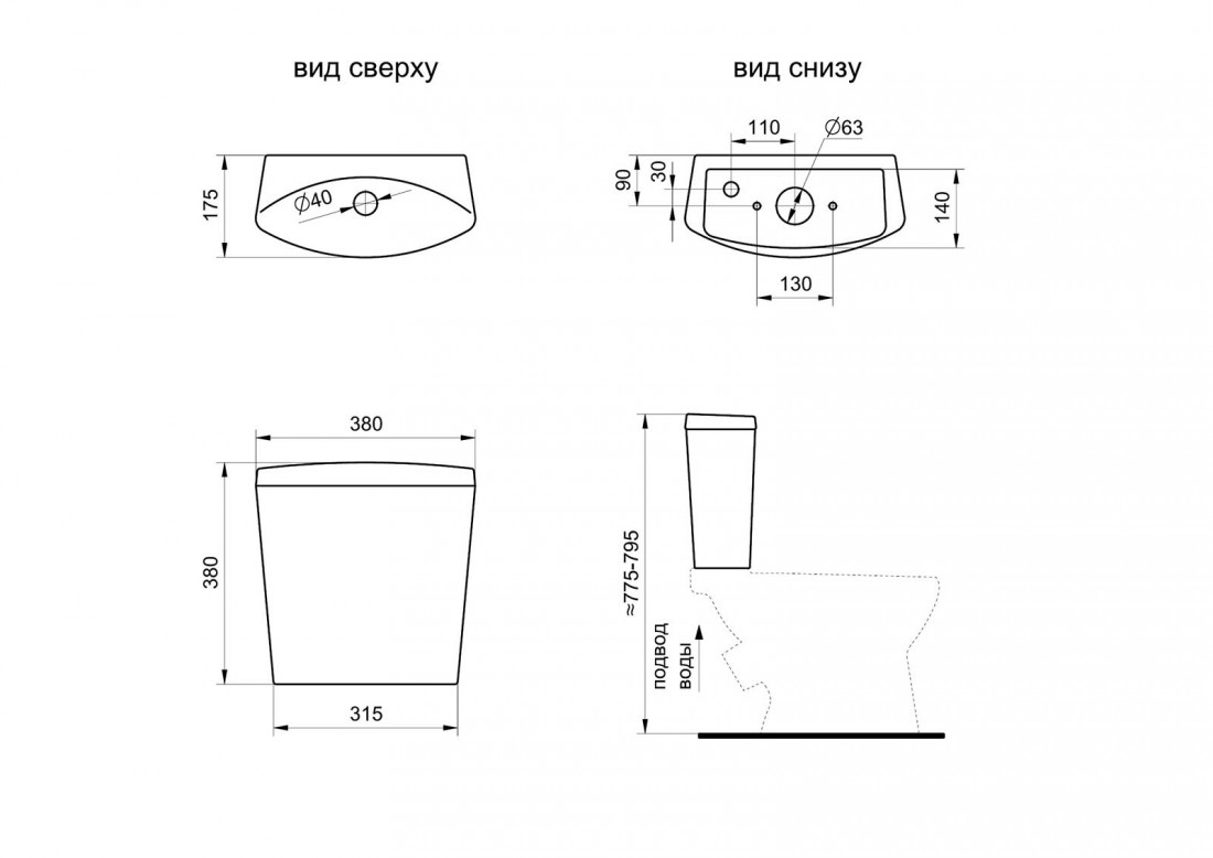 | Организация смывающего потока: | Каскадная (прямой смыв) |