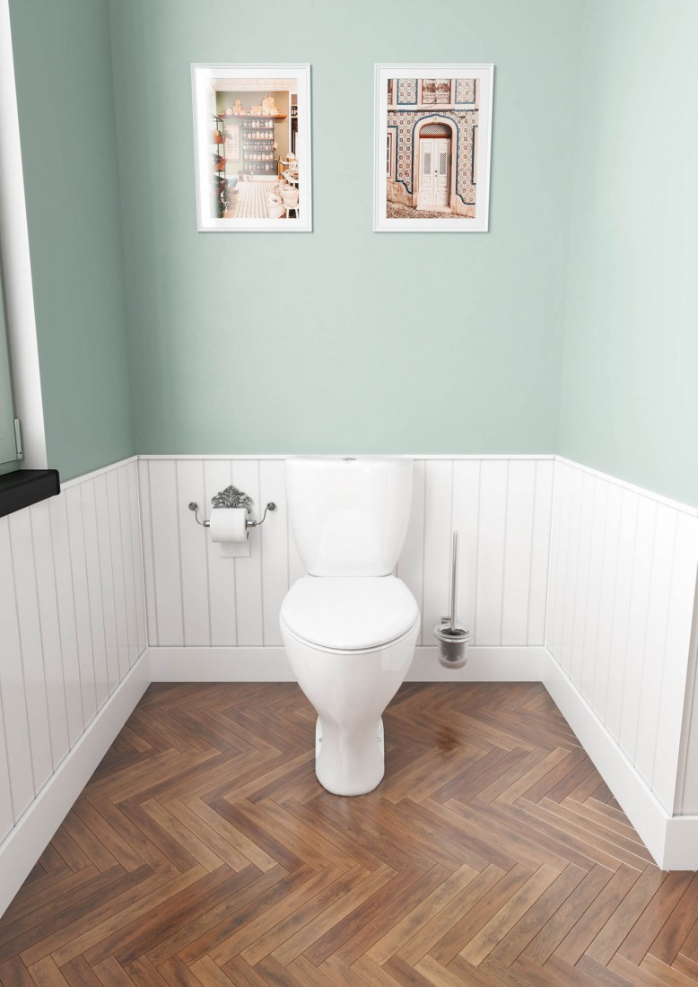 Унитаз Santeri Воротынский — напольная модель с косым выпуском, подходящая для стандартной разводки канализации. Оснащён всем необходимым для монтажа и комфортного использования.