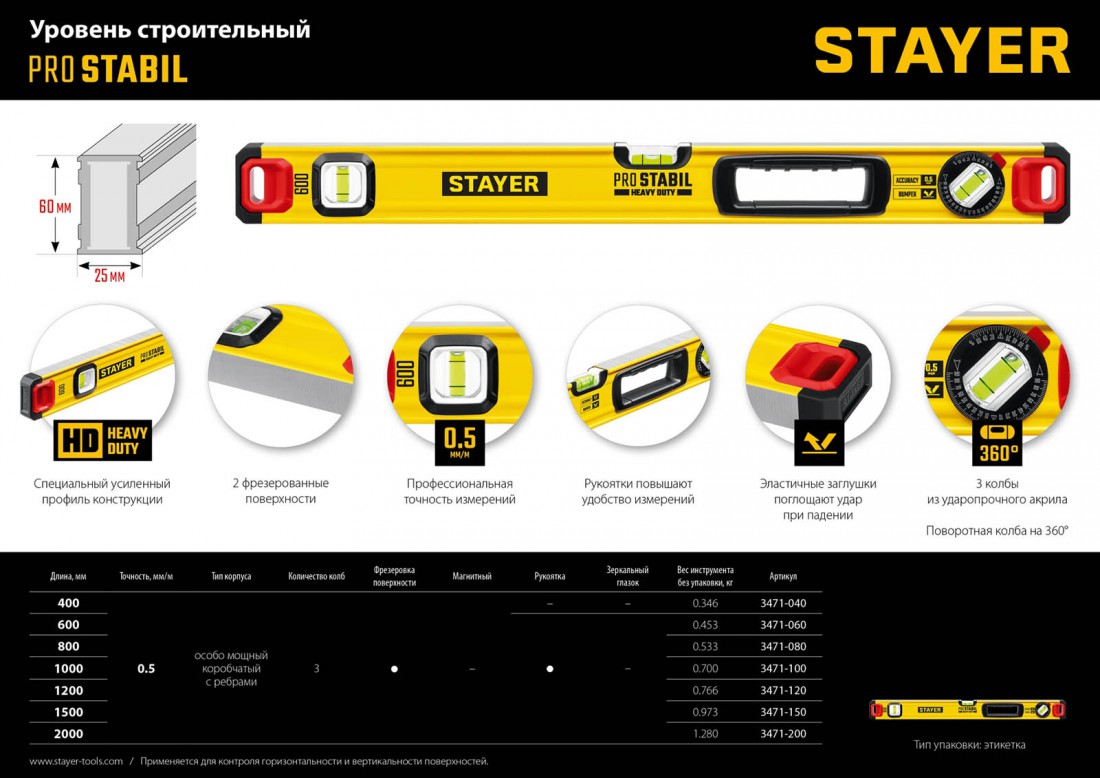 Уровень строительный Stayer Pro Stabil усиленный 80 см, 3 ампулы, с поворотным глазком, шт купить в Новом Уренгое по оптовой цене в интернет магазине СтройПлатформа.