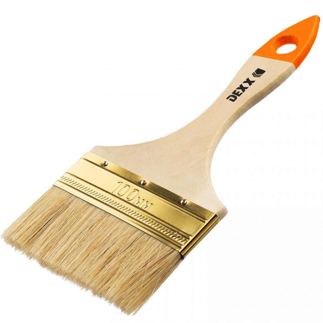 Кисть плоская 100 мм натуральная щетина Dexx, шт купить в Новом Уренгое по оптовой цене в интернет магазине СтройПлатформа. Кисть плоская 100 мм с натуральной щетиной Dexx — это универсальный инструмент, идеально подходящий для нанесения всех видов лакокрасочных материалов (ЛКМ). Натуральная щетина обеспечивает отличное впитывание и равномерное нанесение красок, лаков и эмалей, что делает её эффективной для работы с различными поверхностями. Прочный стальной бандаж надёжно фиксирует щетину, предотвращая её выпадение, а деревянная рукоятка обеспечивает удобный и комфортный захват, что особенно важно при длительных работах.