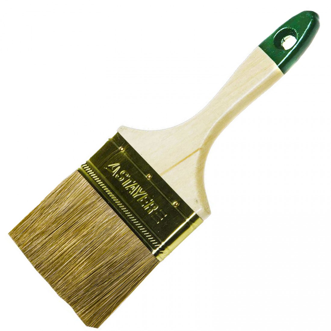 Кисть плоская 100 мм смешанная щетина Stayer Lasur, шт купить в Новом Уренгое по оптовой цене в интернет магазине СтройПлатформа. Кисть плоская 100 мм с смешанной щетиной Stayer Lasur — это идеальный инструмент для профессионалов и любителей, обеспечивающий оптимальное нанесение высокотекучих лакокрасочных материалов (ЛКМ), таких как лаки, пропитки, морилки и лазури. Благодаря сочетанию натуральных и синтетических волокон, смешанная щетина обеспечивает отличное впитывание и равномерное распределение состава по поверхности.