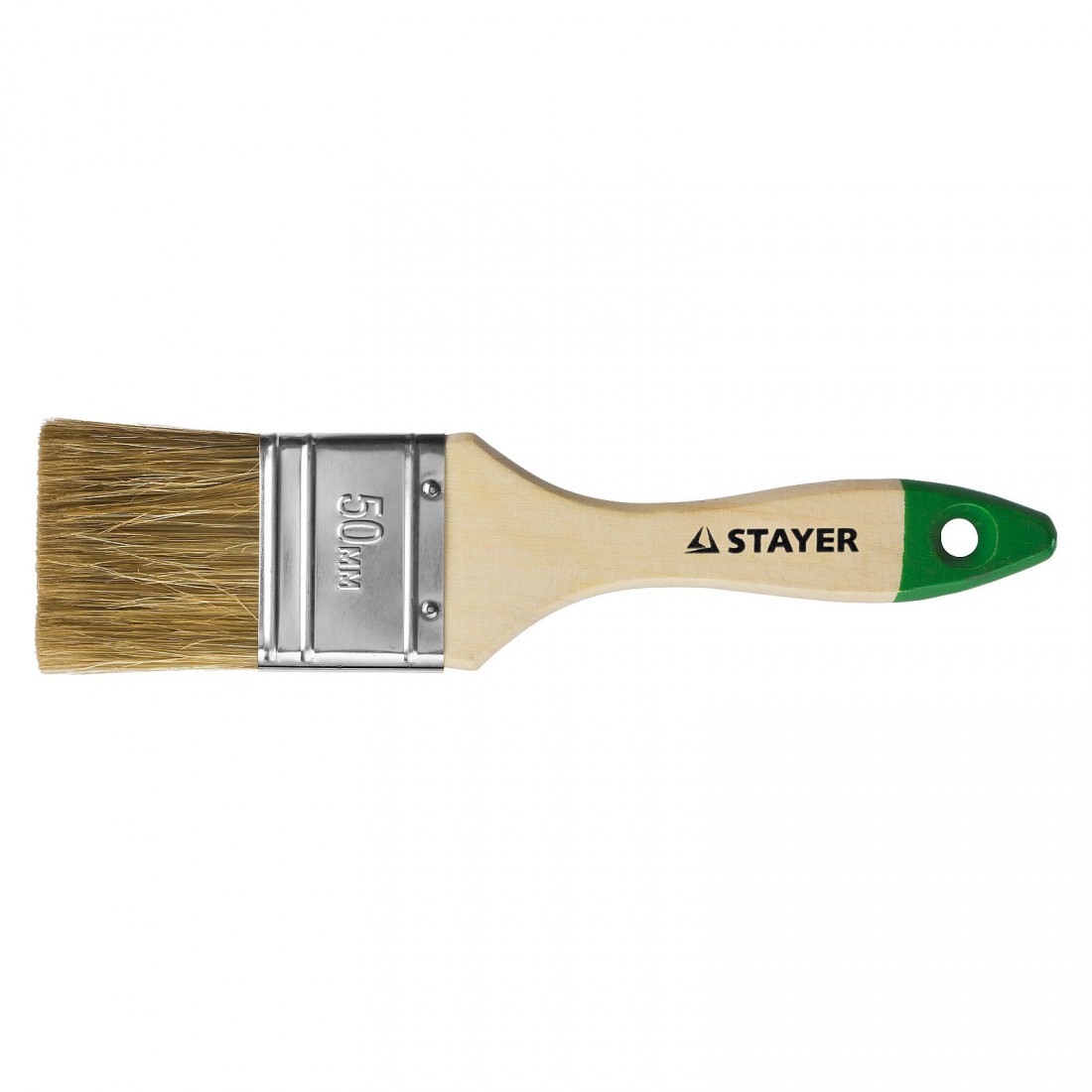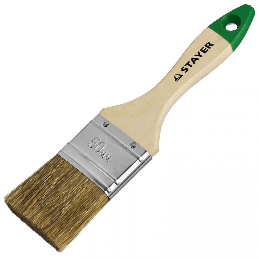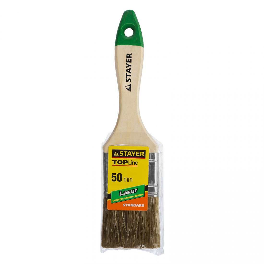 Кисть плоская 50 мм смешанная щетина Stayer Lasur, шт купить в Новом Уренгое по оптовой цене в интернет магазине СтройПлатформа. Кисть плоская 50 мм с смешанной щетиной Stayer Lasur — это идеальный инструмент для профессионалов и любителей, обеспечивающий оптимальное нанесение высокотекучих лакокрасочных материалов (ЛКМ), таких как лаки, пропитки, морилки и лазури. Благодаря сочетанию натуральных и синтетических волокон, смешанная щетина обеспечивает отличное впитывание и равномерное распределение состава по поверхности.