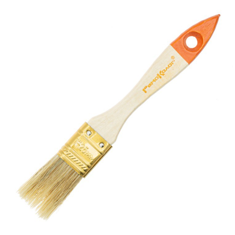 Кисти с натуральной щетиной идеально подходят для покраски деревянных поверхностей, нанесения густых и вязких материалов, а также работы с эмалями по металлу, обеспечивая гладкое покрытие без разводов. Бандаж из лакированной жести защищает кисть от коррозии, а щетина надежно зафиксирована с помощью эпоксидного клея и деревянных клиньев. Деревянная рукоятка покрыта лаком для дополнительной защиты и удобства, а ярко окрашенный кончик кисти облегчает её идентификацию среди других инструментов.