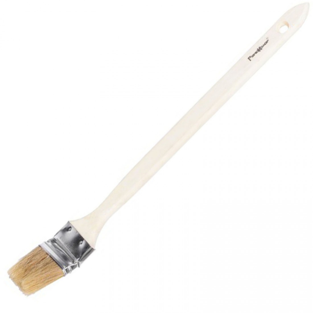 Кисть радиаторная 50 мм натуральная щетина РемоКолор, шт купить в Новом Уренгое по оптовой цене в интернет магазине СтройПлатформа. Кисть радиаторная 50 мм с натуральной щетиной РемоКолор — это идеальный инструмент для окрашивания труднодоступных мест, таких как радиаторы и узкие пространства. Натуральная светлая щетина обеспечивает качественное нанесение всех типов лакокрасочных материалов (ЛКМ), включая масляные и алкидные краски, а также лаки. Кончики щетины расщеплены для лучшей впитываемости краски, что помогает достичь ровного и гладкого покрытия.