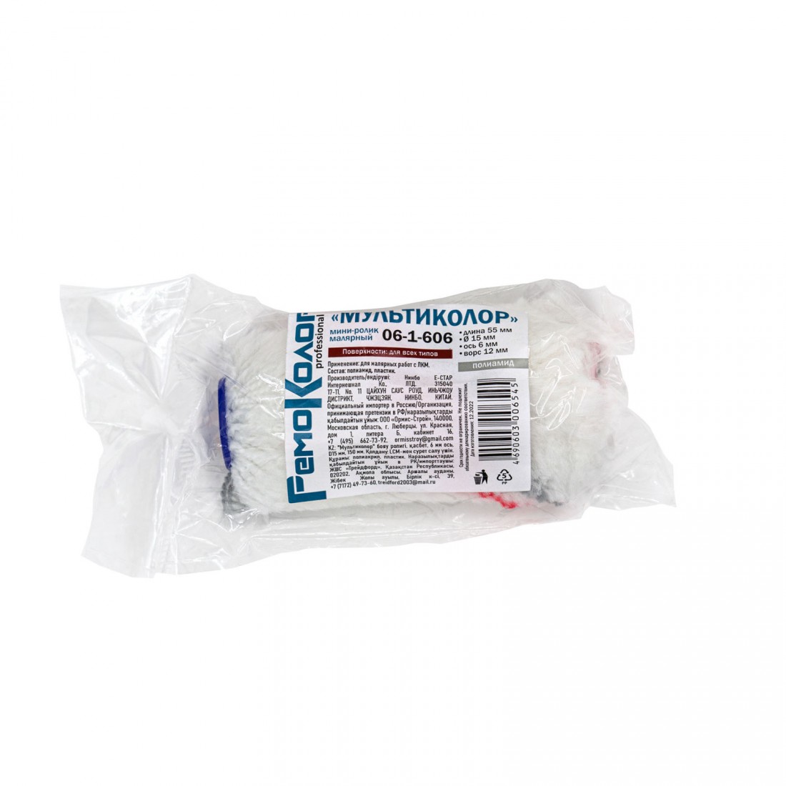 Мини-ролик полиамид 55 мм, D15 мм, ворс 12 мм, ось 6 мм, РемоКолор Мультиколор, шт купить в Новом Уренгое по оптовой цене в интернет магазине СтройПлатформа. Мини-ролик "РемоКолор Мультиколор" с полиамидной шубкой и длиной ворса 12 мм предназначен для проведения малярных работ на небольших и труднодоступных участках. Полиамид — это высококачественный, износостойкий материал, который отлично впитывает и равномерно распределяет краску по поверхности. Благодаря компактным размерам ролик идеально подходит для точной и аккуратной работы на деталях.