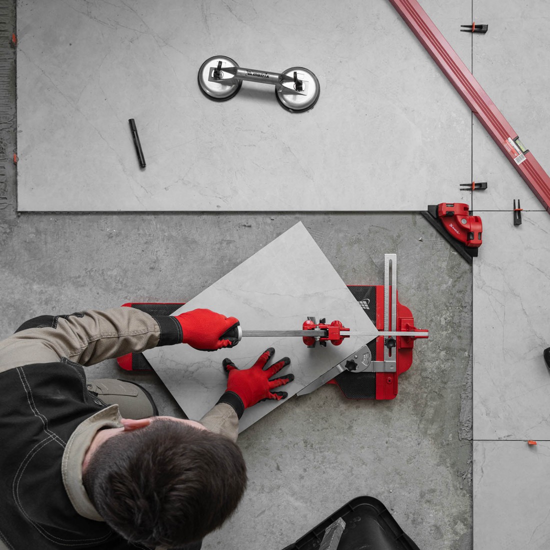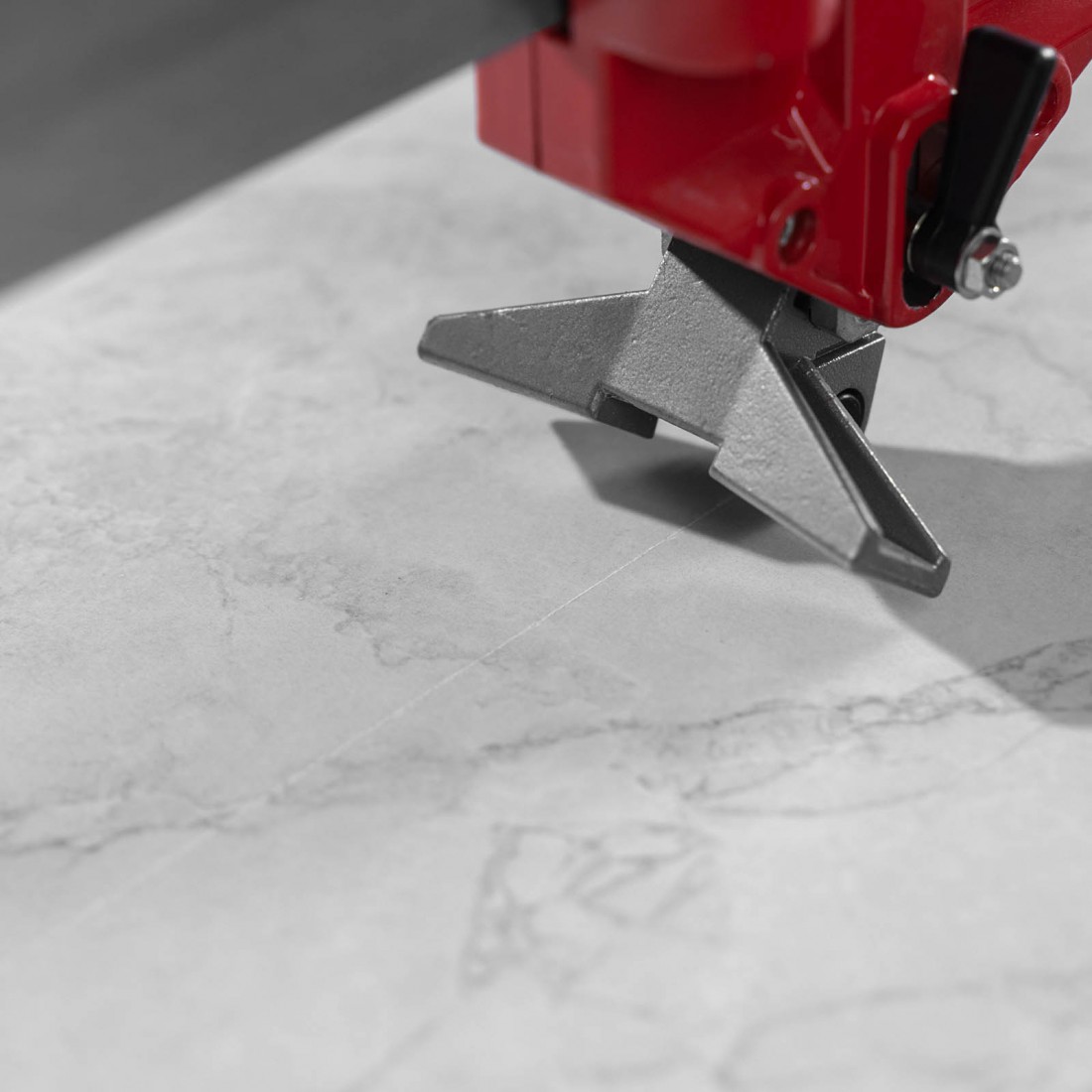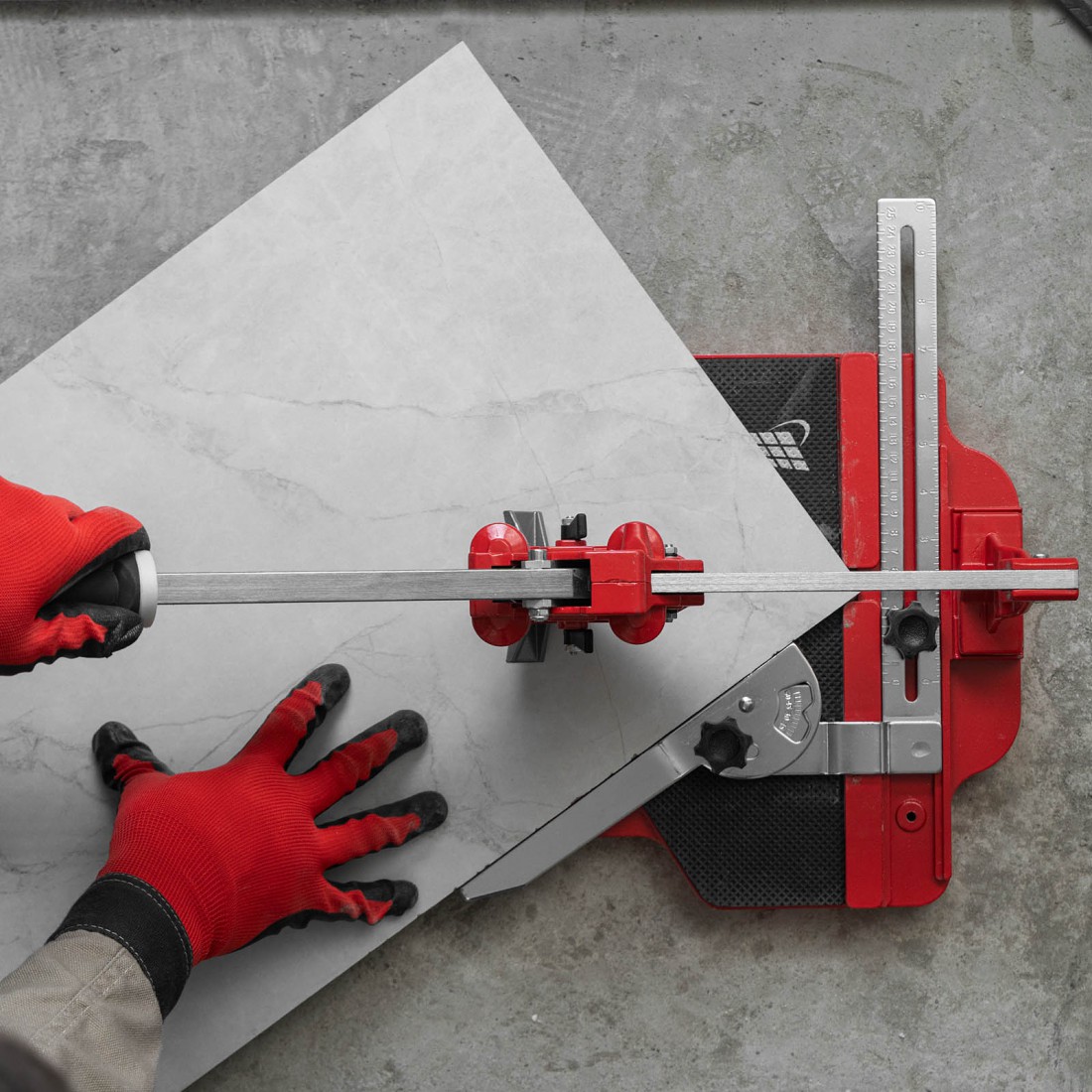 Режущий ролик из твёрдого сплава ВК8 установлен на подшипниках, что увеличивает срок службы инструмента и позволяет аккуратно разрезать как керамическую плитку, так и керамогранит. Мощный разделитель даёт возможность эффективно выполнять разлом в любой точке плитки.