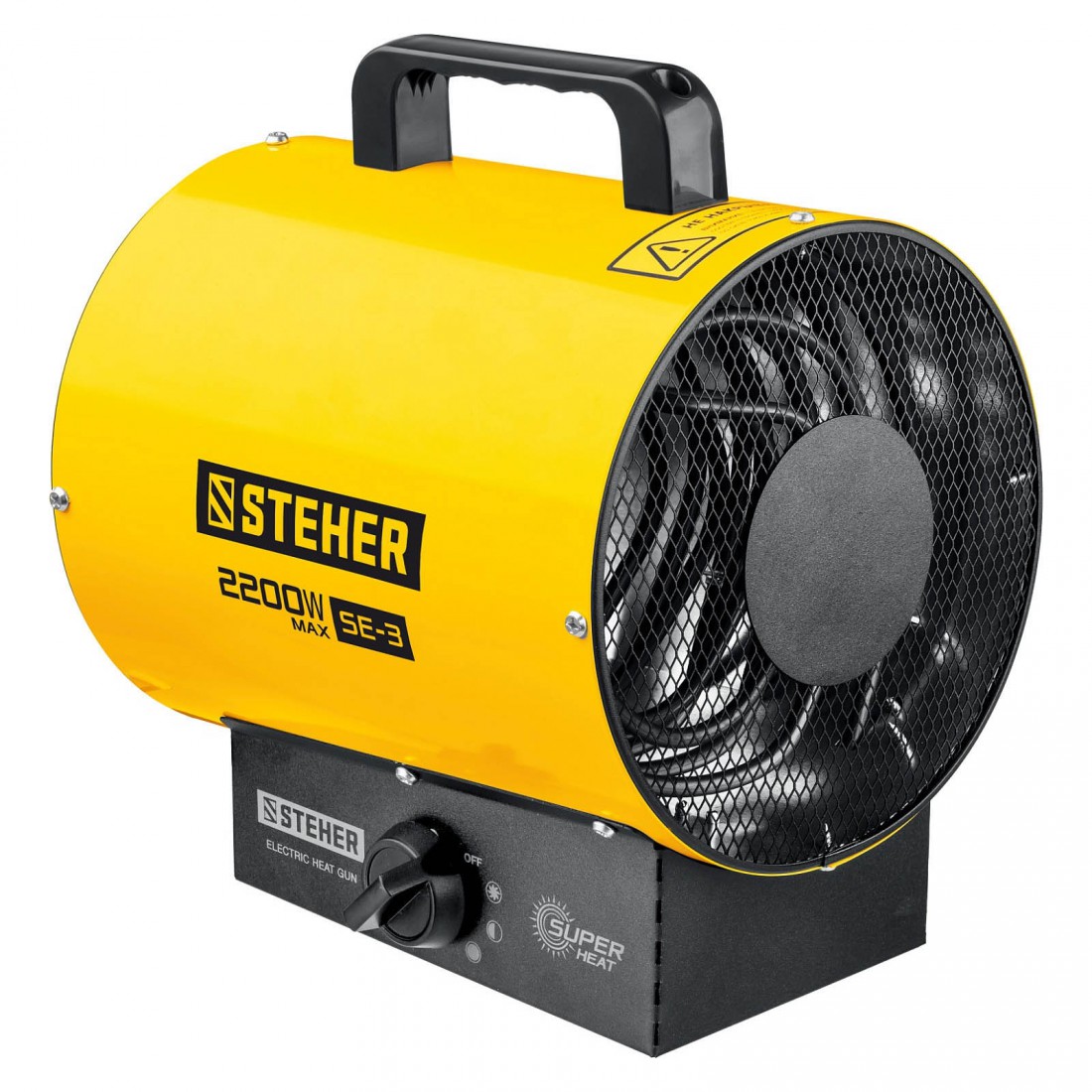 Тепловая пушка электрическая Steher 2 кВт SE-3 купить в Новом Уренгое по оптовой цене в интернет магазине СтройПлатформа. Тепловентилятор STEHER SVK-2000T мощностью 2 кВт предназначен для быстрого и равномерного обогрева помещений площадью до 20 м². Оснащён металлокерамическим нагревательным элементом, который обеспечивает мгновенный нагрев воздуха и долговечность работы устройства.