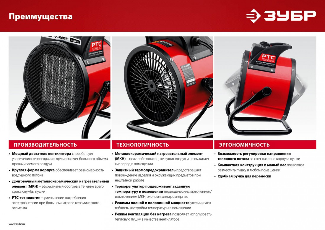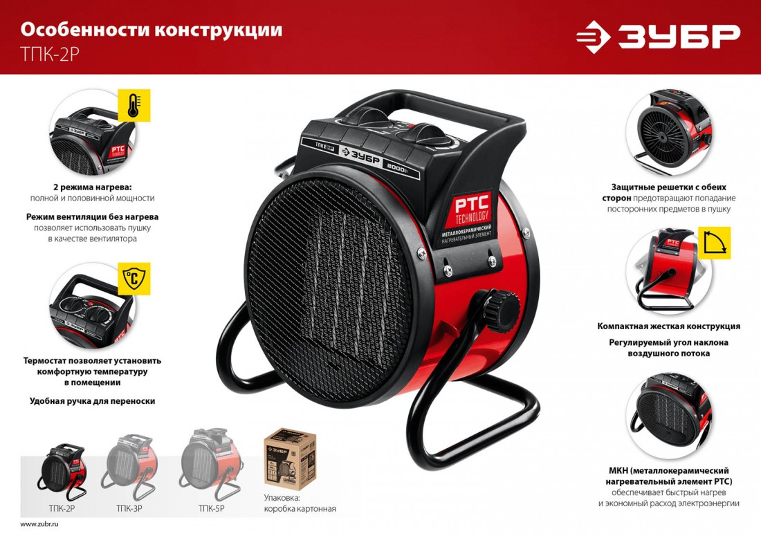 Тепловая пушка электрическая Зубр 2 кВт ТПК-2Р купить в Новом Уренгое по оптовой цене в интернет магазине СтройПлатформа.