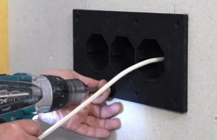 После монтажа финишного слоя вырезается отверстие под лицевую часть подрозетника.