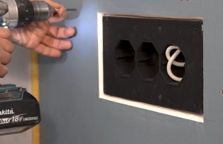 После монтажа финишного слоя вырезается отверстие под лицевую часть подрозетника.