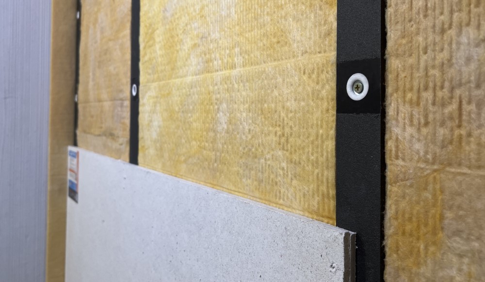 Монтаж: Устанавливается вдоль стены или потолка с шагом 600 мм. По периметру монтируется с использованием ленты Ультракустик F100. Между профилями размещаются звукопоглощающие плиты (например, Шумостоп-С2, плотность 30–90 кг/м³, толщина до 20 мм). Поверх монтируются листы ГКЛ 12,5 мм. Все примыкания герметизируются виброакустическим герметиком Ультракустик или Вибросил.