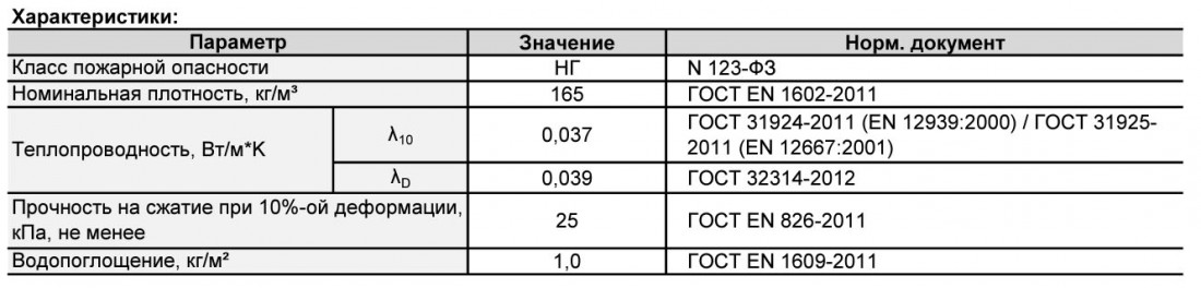 Плотность, кг/м3: | 165 кг/м3 |