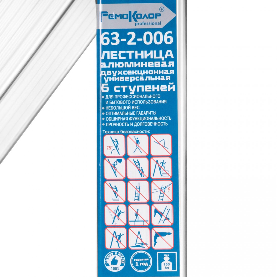 Лестница алюминиевая универсальная, двухсекционная, 6 ступеней, шт купить в Новом Уренгое по оптовой цене в интернет магазине СтройПлатформа. Лестница РемоКолор двухсекционная, универсальная, алюминиевая, 6 ступеней, 63-2-006 предназначена для профессионального использования в интенсивном режиме. Может применяться для проведения строительных, ремонтных и монтажных работ.