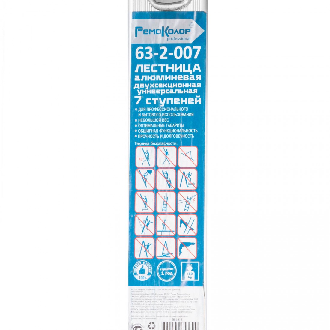 Лестница алюминиевая универсальная, двухсекционная, 7 ступеней, шт купить в Новом Уренгое по оптовой цене в интернет магазине СтройПлатформа. Лестница РемоКолор двухсекционная, универсальная, алюминиевая, 7 ступеней, 63-2-007 предназначена для профессионального использования в интенсивном режиме. Может применяться для проведения строительных, ремонтных и монтажных работ.