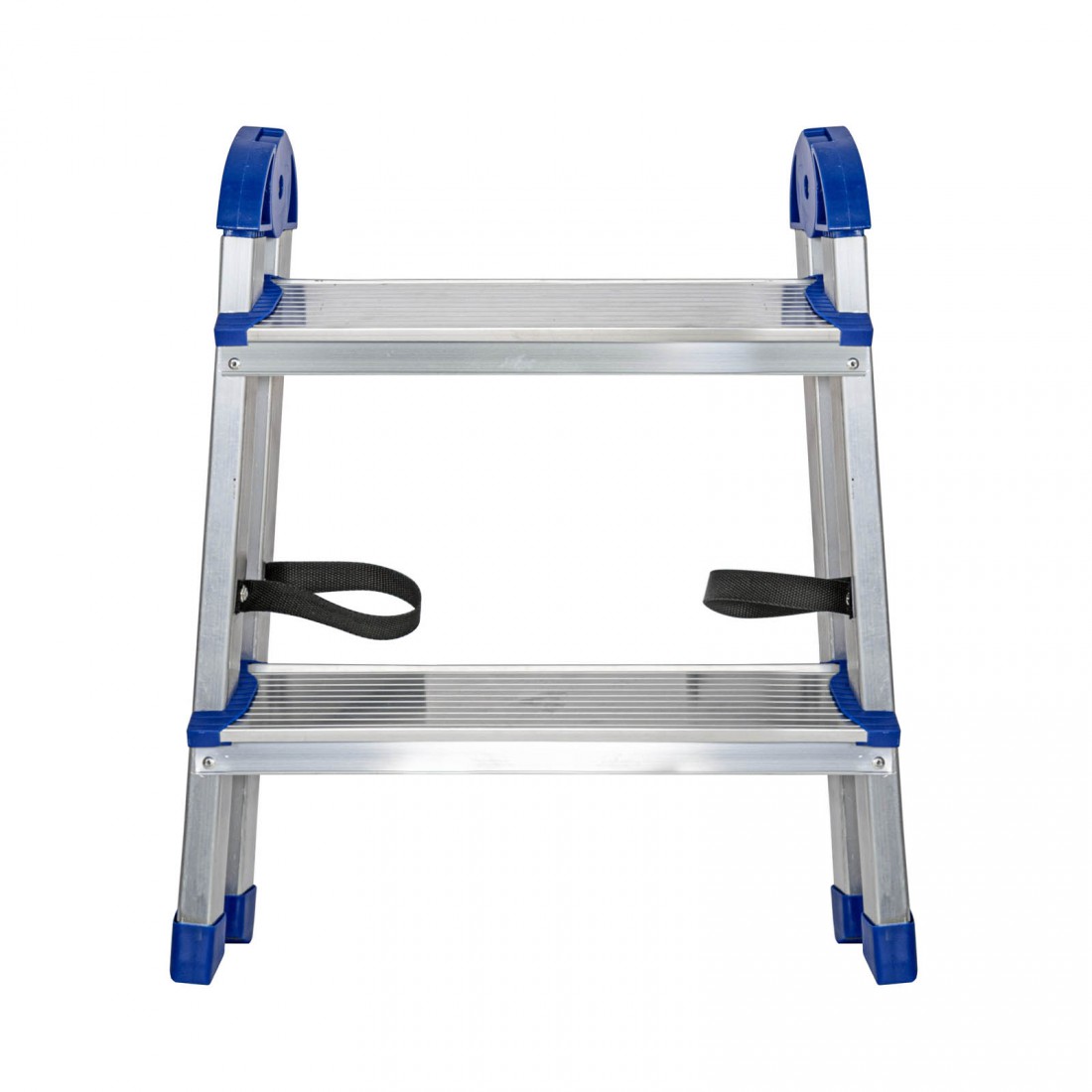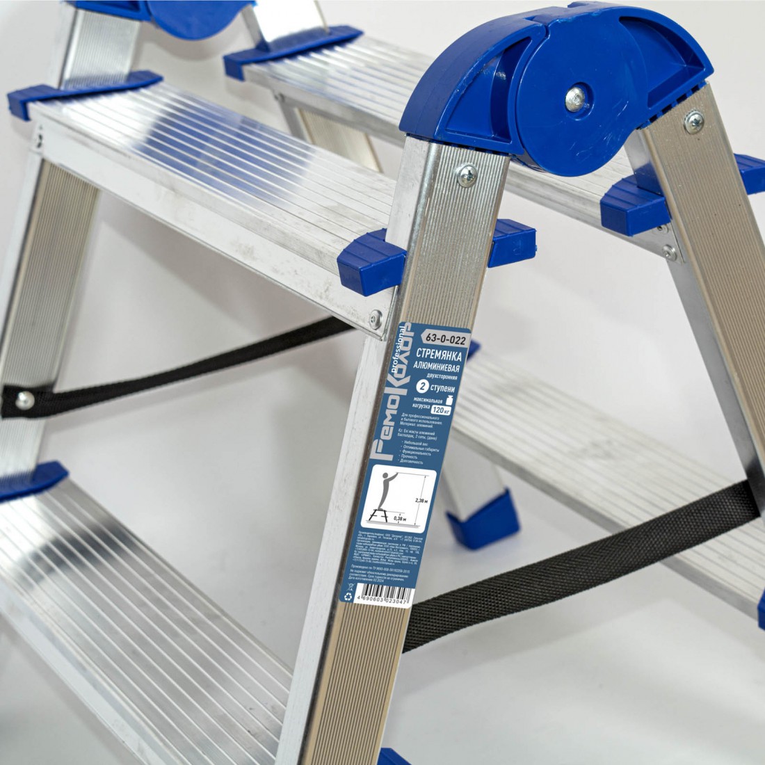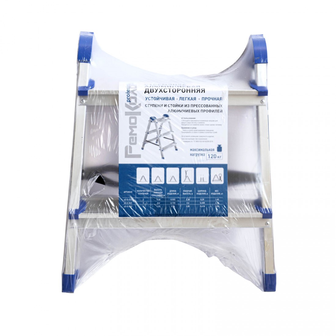 Стремянка алюминиевая двухсторонняя, 2 ступени, шт купить в Новом Уренгое по оптовой цене в интернет магазине СтройПлатформа. Стремянка алюминиевая двухсторонняя РемоКолор Professional, 2 ступени - Компактная и надежная двухсторонняя стремянка предназначена для выполнения различных работ на небольшой высоте. Модель с двумя ступенями позволяет комфортно работать как с одной, так и с другой стороны, обеспечивая максимальную функциональность при минимальных габаритах. Благодаря небольшому весу (всего 1,8 кг) стремянку легко переносить и хранить.