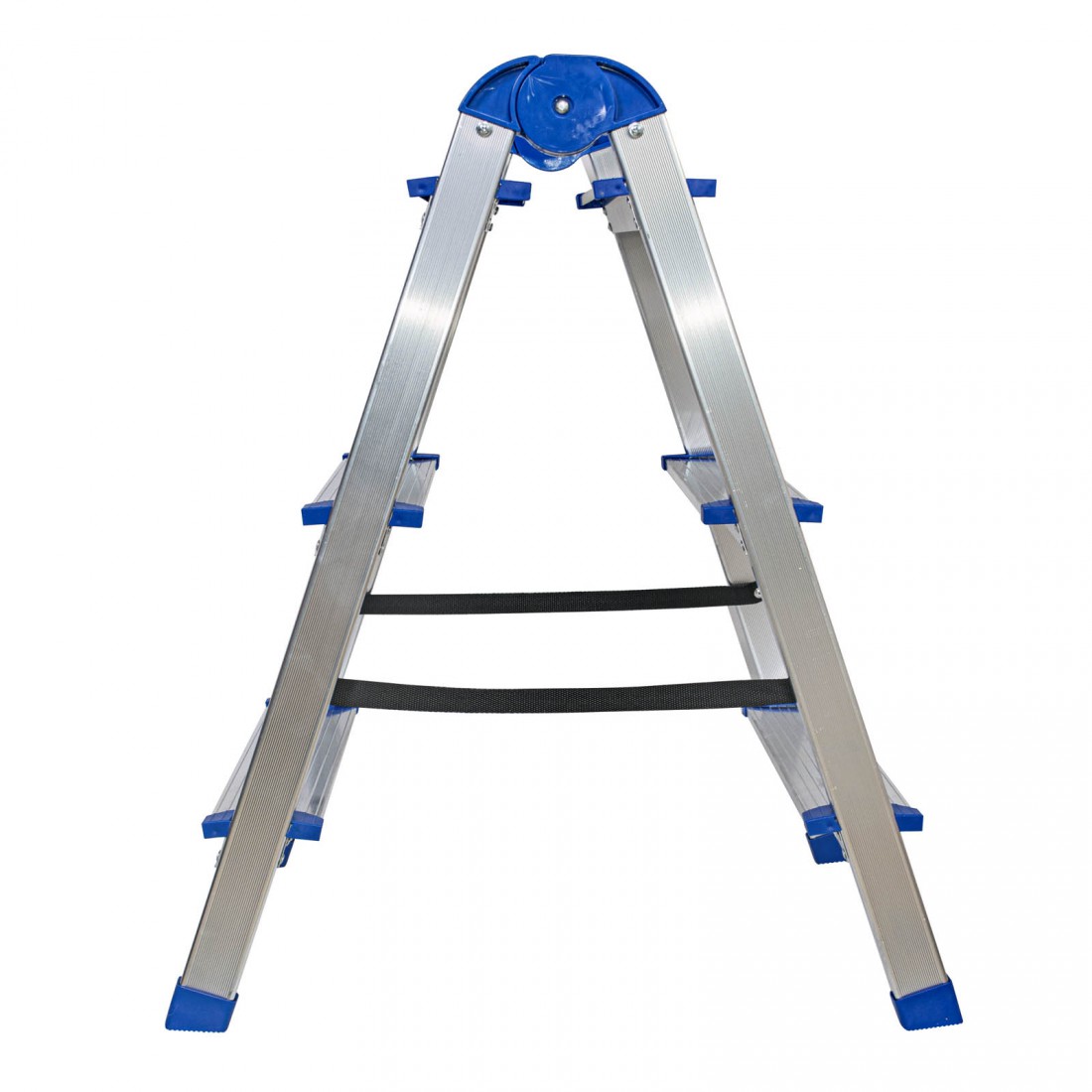 Профилированные алюминиевые ступени обеспечивают безопасное и удобное размещение ноги, а устойчивая конструкция гарантирует надежную опору даже при максимальной нагрузке 120 кг. Стремянка подходит для интенсивного использования в быту и профессиональной деятельности.
