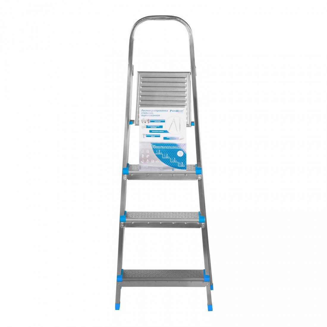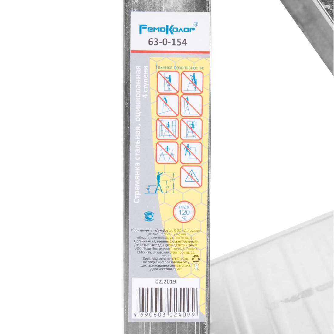 Стремянка стальная, оцинкованная, 4 ступени, шт купить в Новом Уренгое по оптовой цене в интернет магазине СтройПлатформа. Стремянка стальная оцинкованная РемоКолор, 4 ступени - Надежная четырехступенчатая стремянка из оцинкованной стали предназначена для комфортной работы на высоте до 2,77 метра. Модель сочетает повышенную рабочую высоту с исключительной коррозионной стойкостью, что делает ее идеальным решением для помещений с повышенной влажностью. При весе 4,49 кг стремянка сохраняет легкость транспортировки, сохраняя при этом прочность конструкции и способность выдерживать нагрузку до 120 кг.