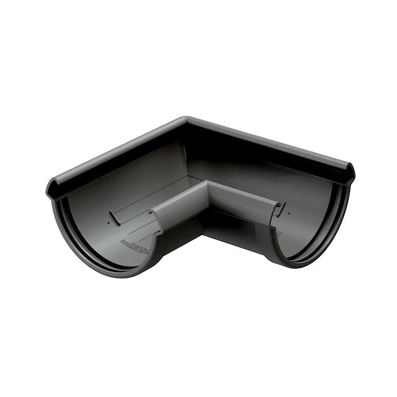 Угол желоба 90 градусов Docke Lux 140/100 мм Ral 7024 графит, шт купить в Новом Уренгое по оптовой цене в интернет магазине СтройПлатформа. Составляющий элемент водосточной системы. Коллекция – Lux.